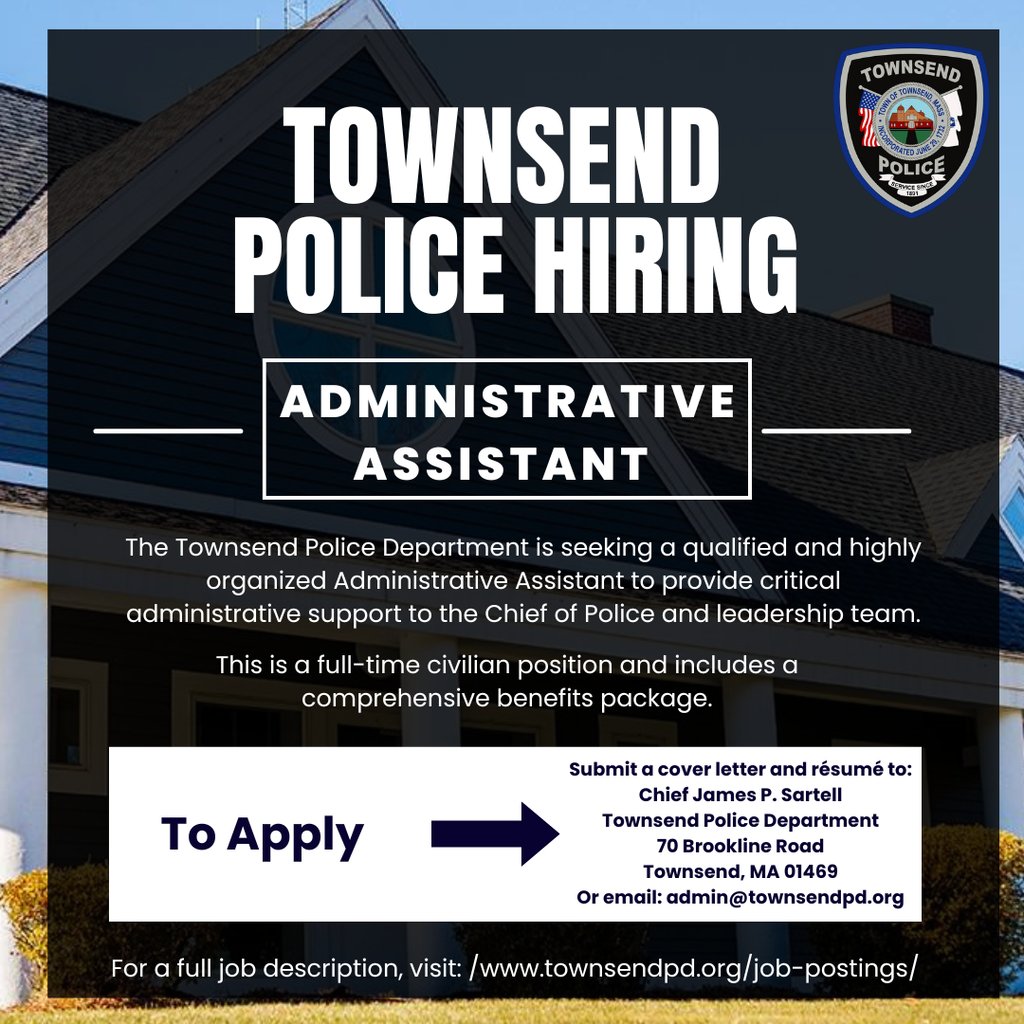 For more information, visit: https://www.townsendpd.org/job-postings/