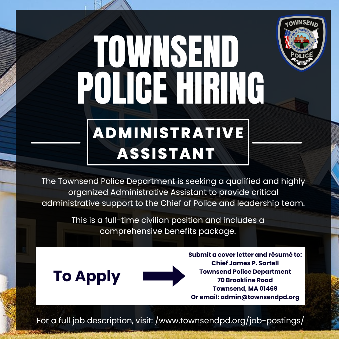 Townsend Police are seeking qualified individuals to fill the role of Administrative Assistant.