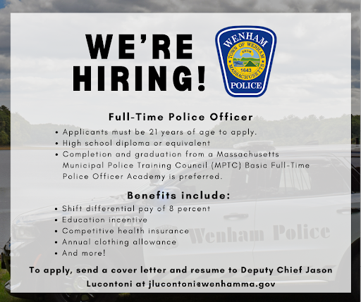 Wenham Police is currently hiring a full-time officer.